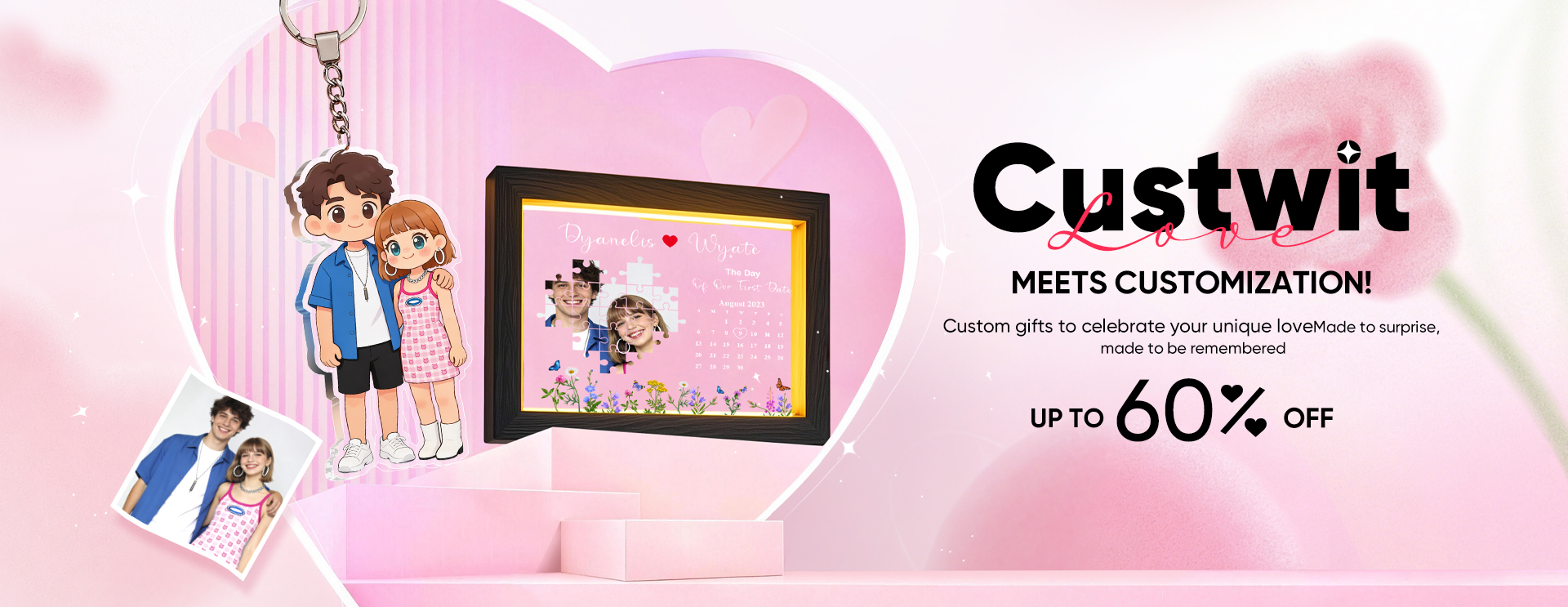 Custom Couple Photo Frame Missing Piece Puzzle Design Romantic Gift Idea -