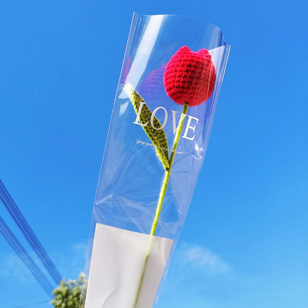 1pc Crochet Red Tulip Handmade Knitted Flower