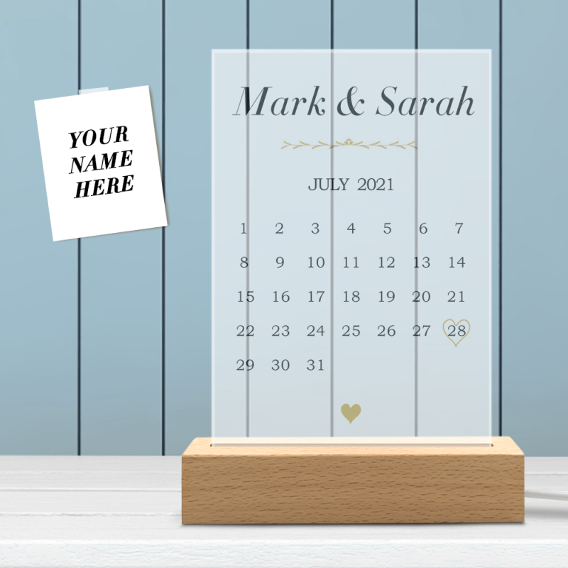 Calendar Night Light Personalized Lamp With Name Anniversary Gifts