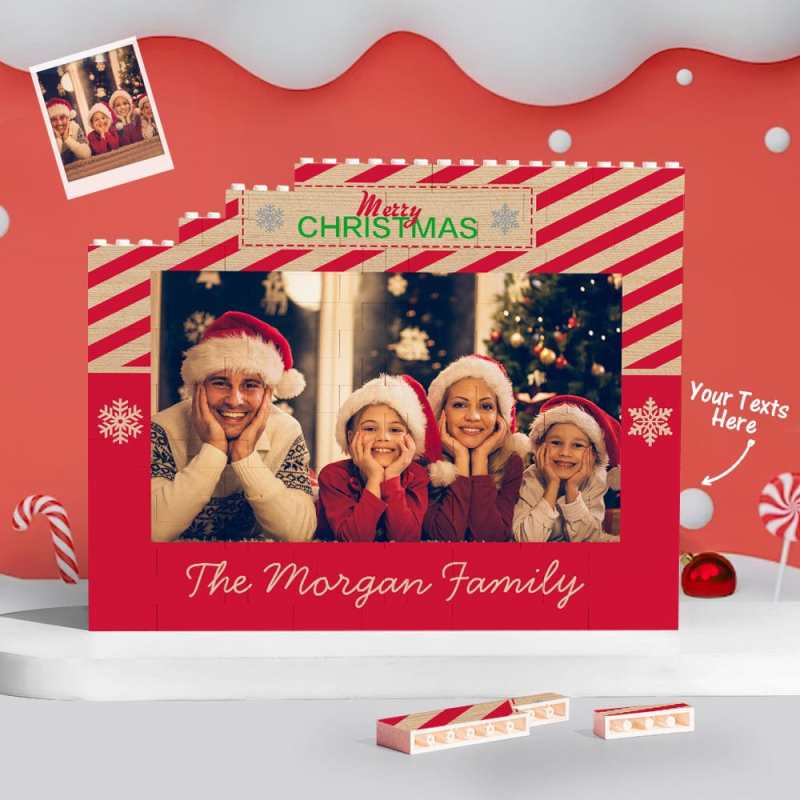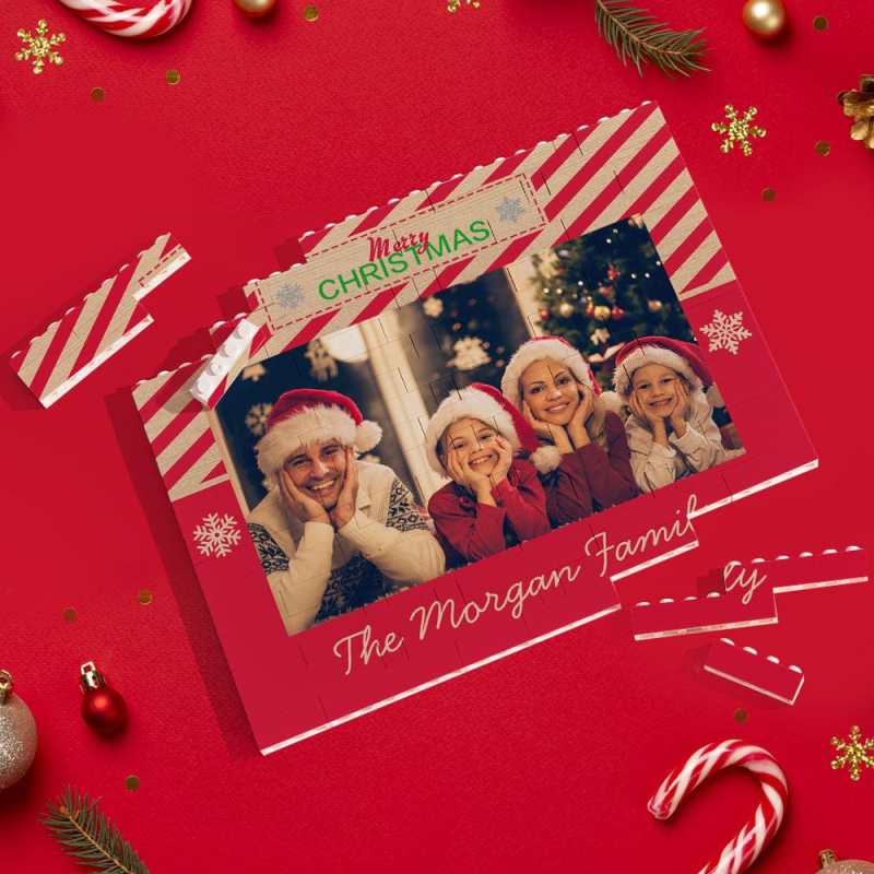 Custom Building Block Puzzle Personalized Horizontal Trio Photo Brick Merry Christmas