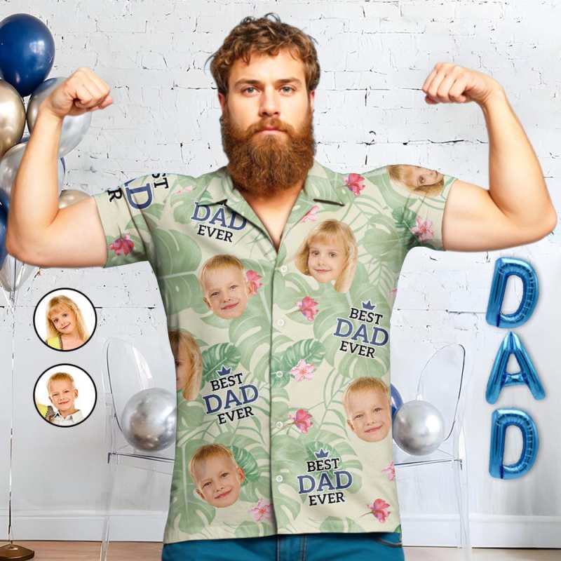 Custom Button-Up Shirts With Face 1-3 Photos Custom Hawaiian Shirts For Dad/Grandpa
