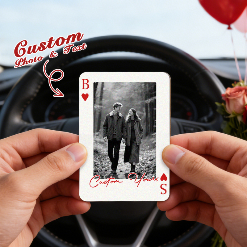 Custom Photo Playing Cards Car Visor Clip – Personalized Wooden Poker-Style Car Photo Clip Valentine’s Day Gift