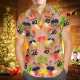 Custom Date and Name Face Hawaiian Shirt Birthday Hawaiian Shirt Red Flower and Palm Tree Shirt