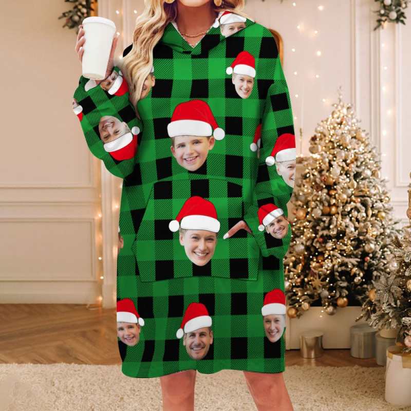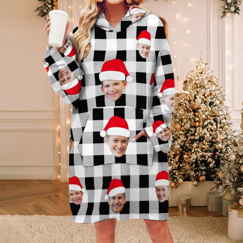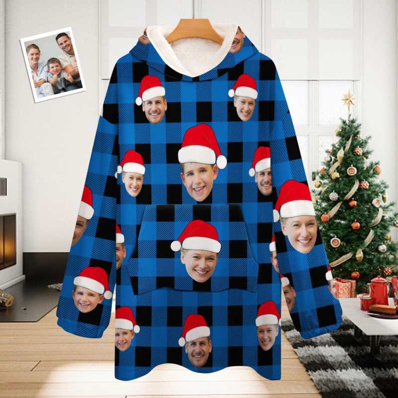 Custom Face Adult Unisex Blanket Pajamas Personalized Photo Christmas Family Buffalo Plaid Pajamas Merry Christmas
