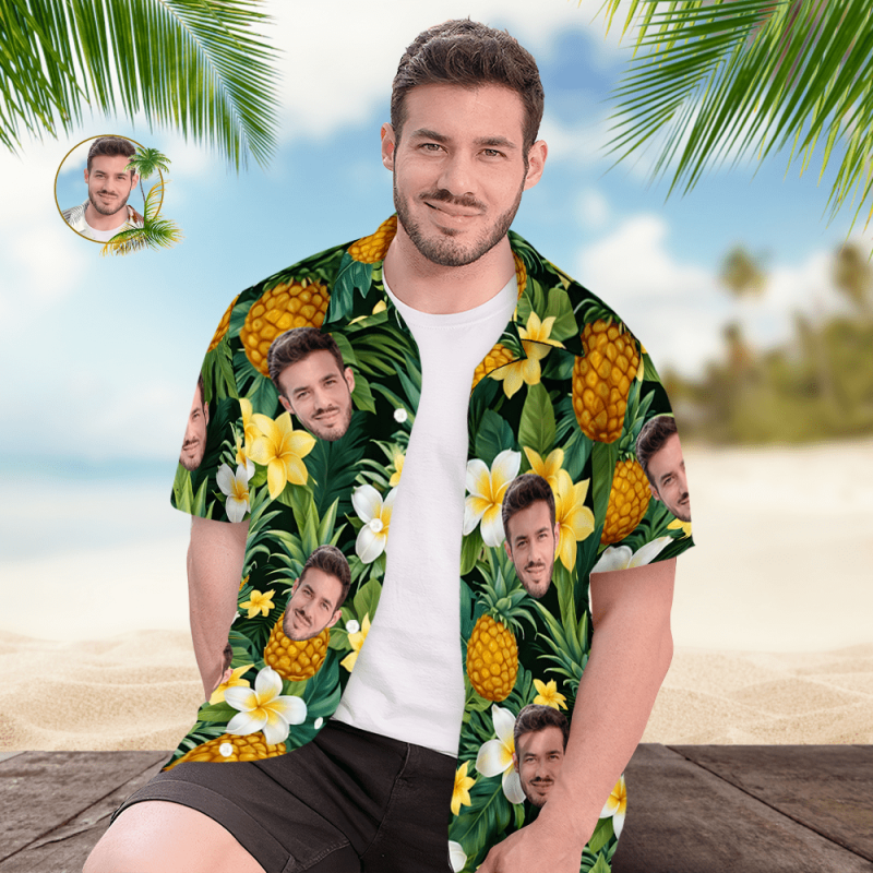 Custom Face Hawaiian Shirt Men's Pineapple Hawaiian Shirt Gift for Him