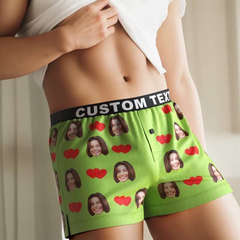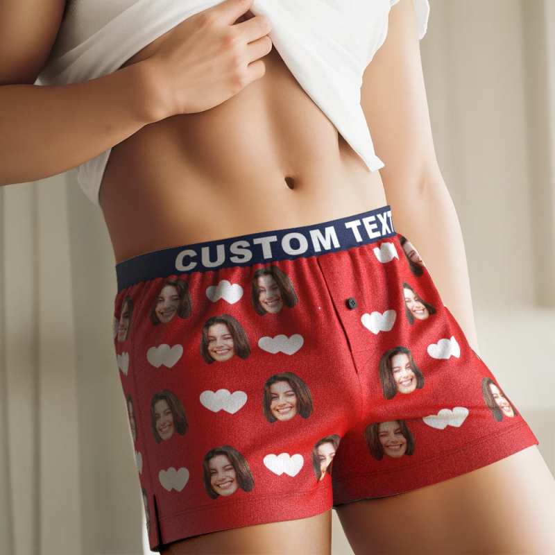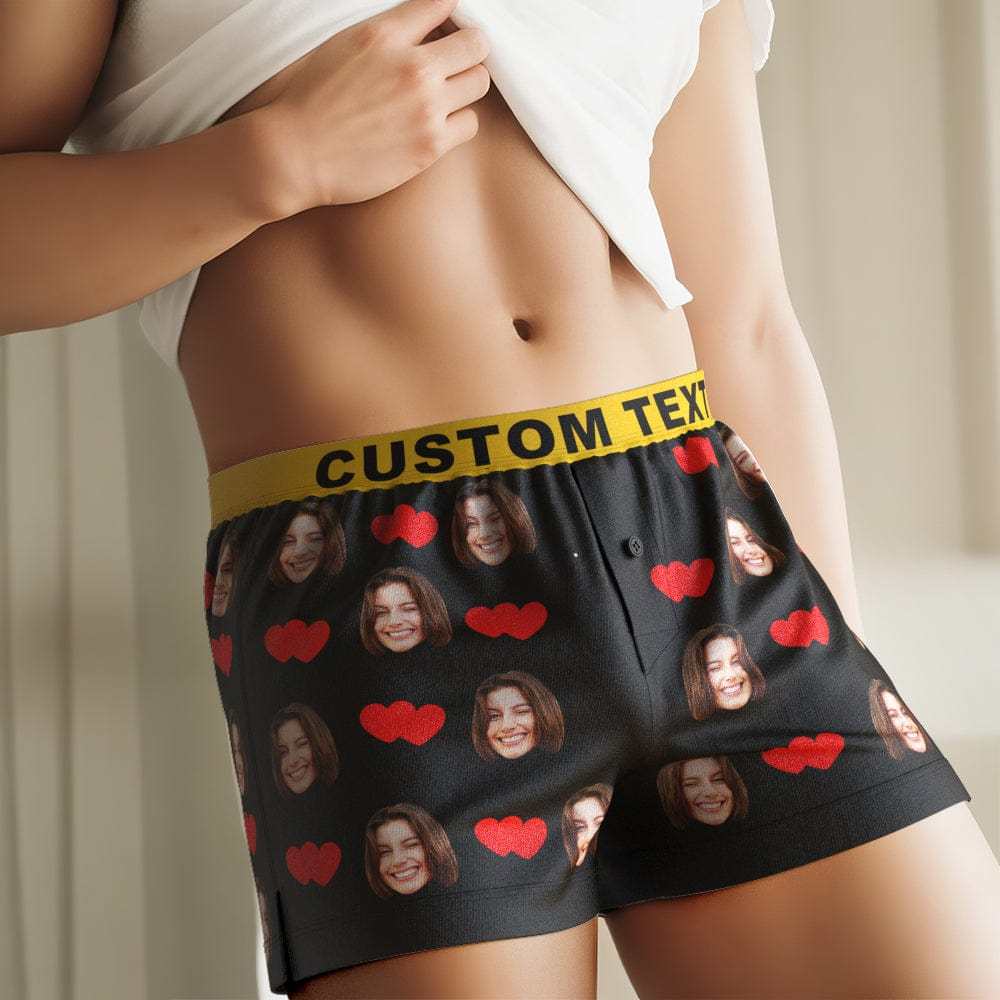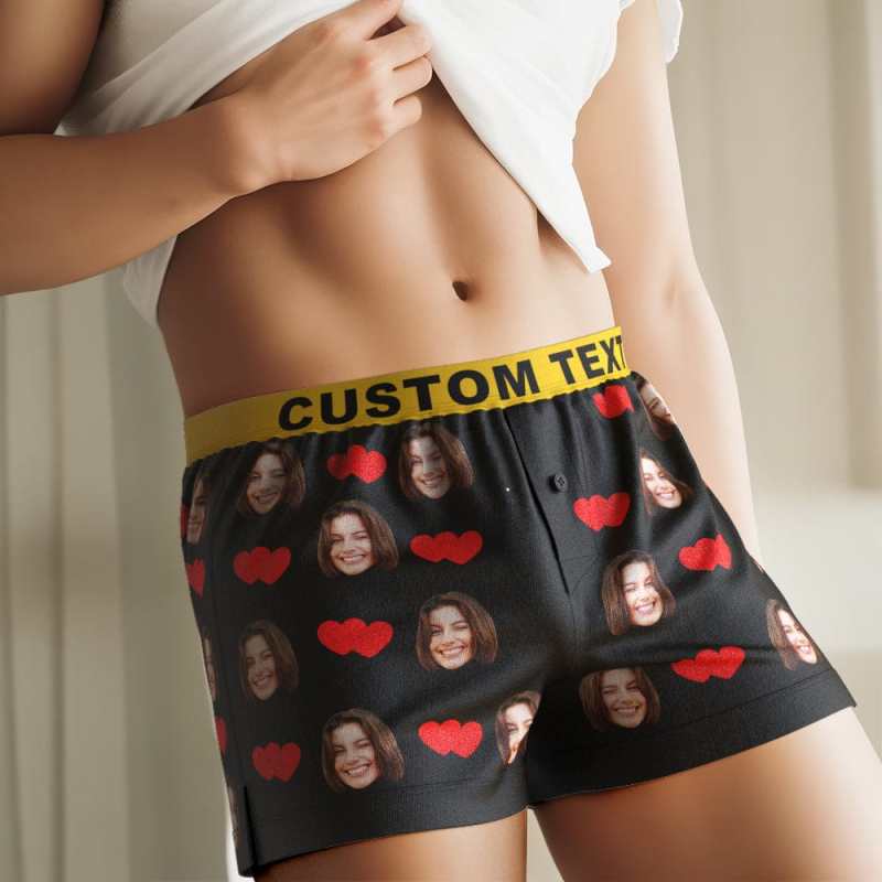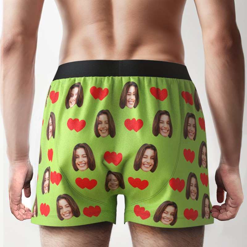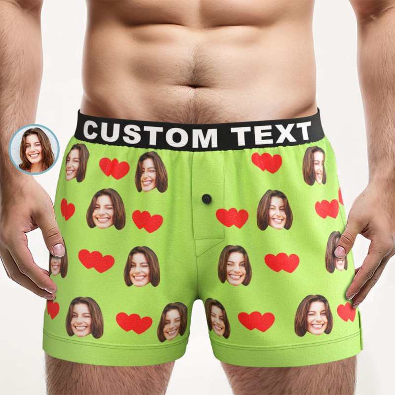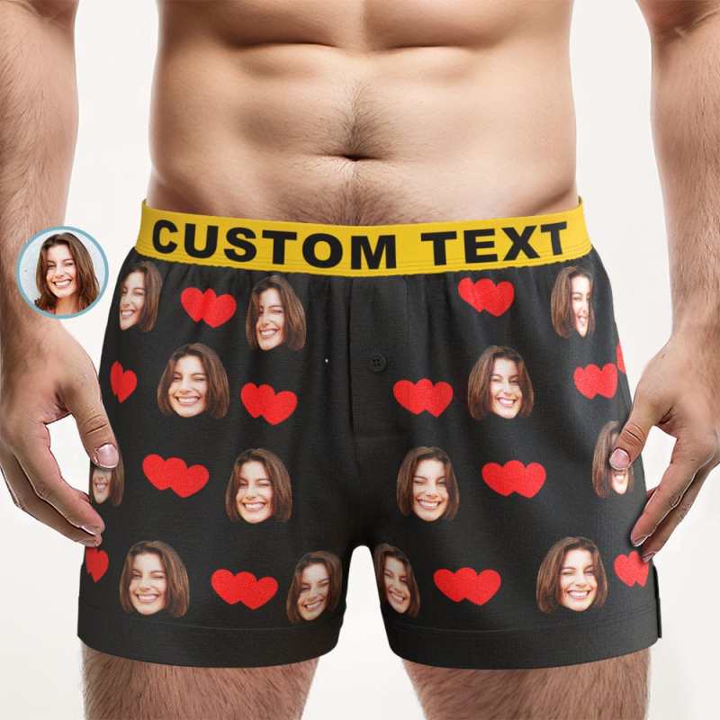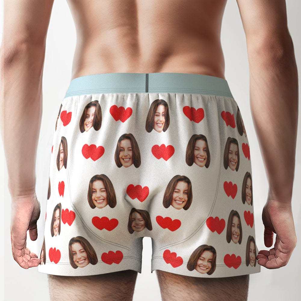 Custom Face Love Hearts Boxer Shorts Personalized Waistband Casual Underwear for Him
