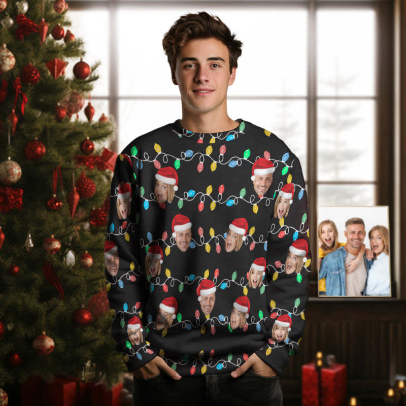 Custom Face Men's Round Neck Sweater Photo Christmas Family Xmas Leds Sweaters