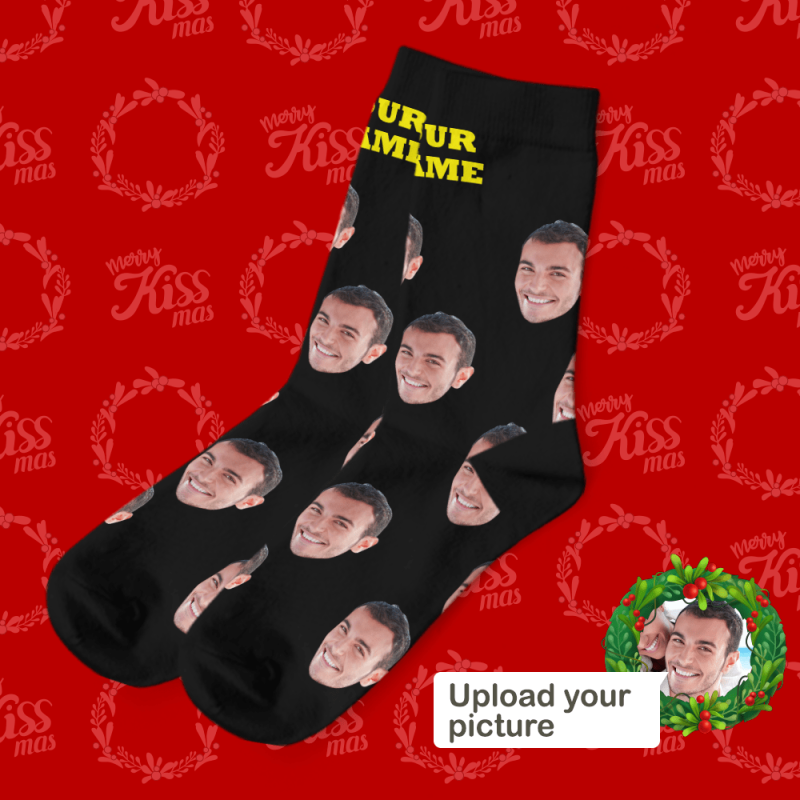 Custom Face Socks With Your Text 3D Preview Colorful Socks Christmas Gifts
