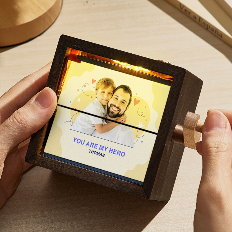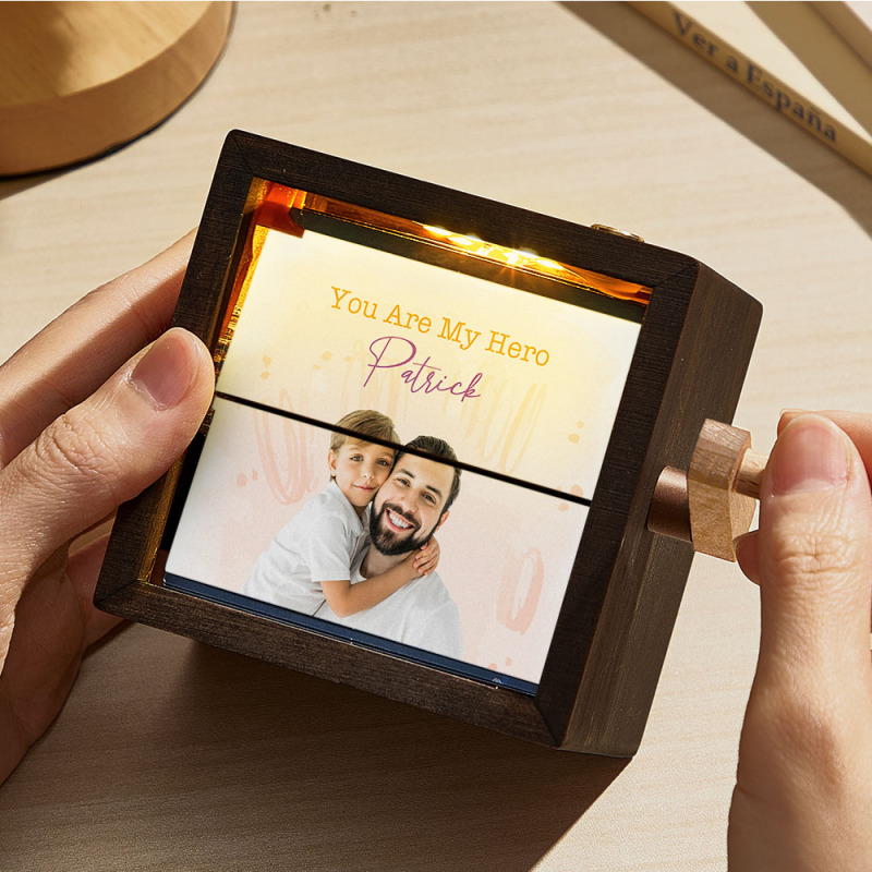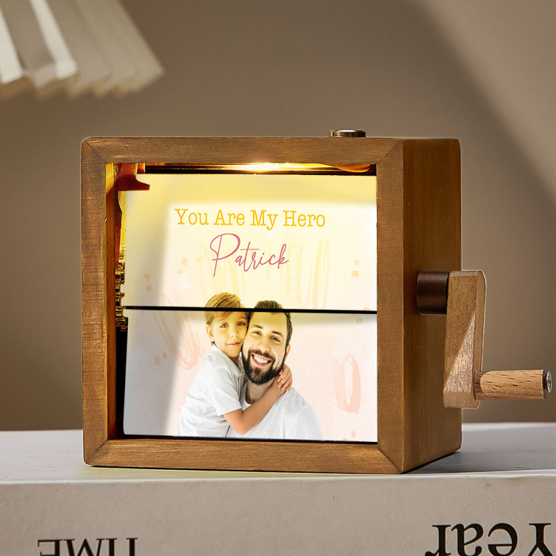 Custom Hand-Cranked Father's Day Flipbook Frame Mechanical Hand-cranked Photo Album with Covers Creative Wooden Keepsake Gift for Dad