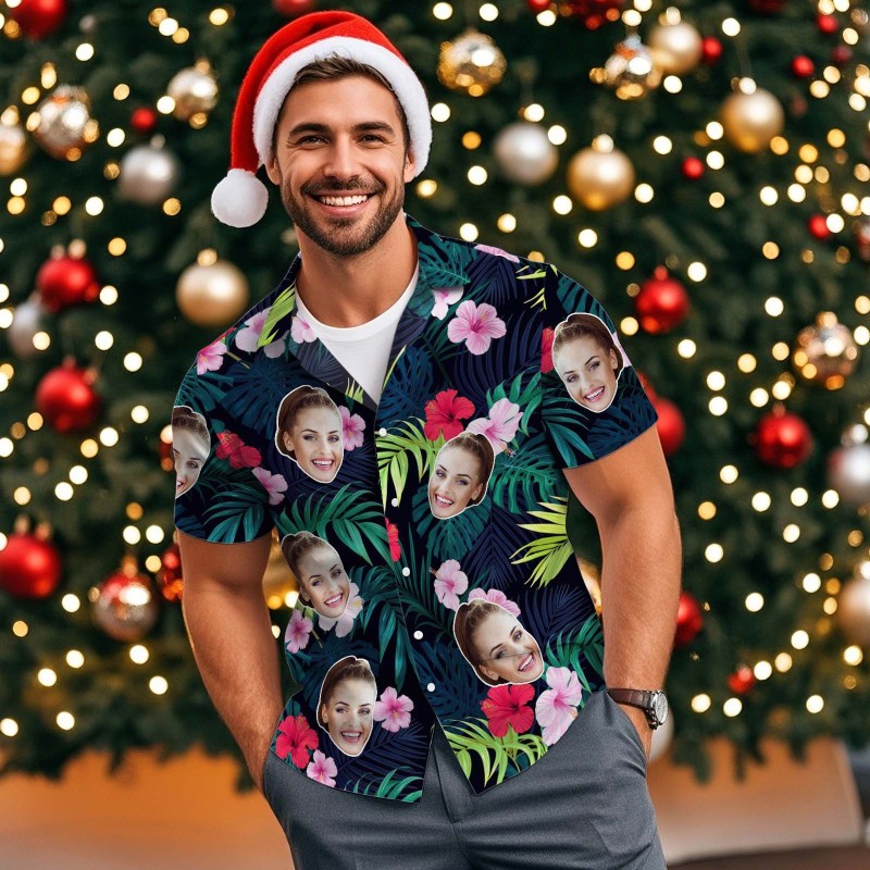 Custom Hawaiian Shirt Tropical Floral Hawaii Shirt All Over Print Face Dark Color Shirt