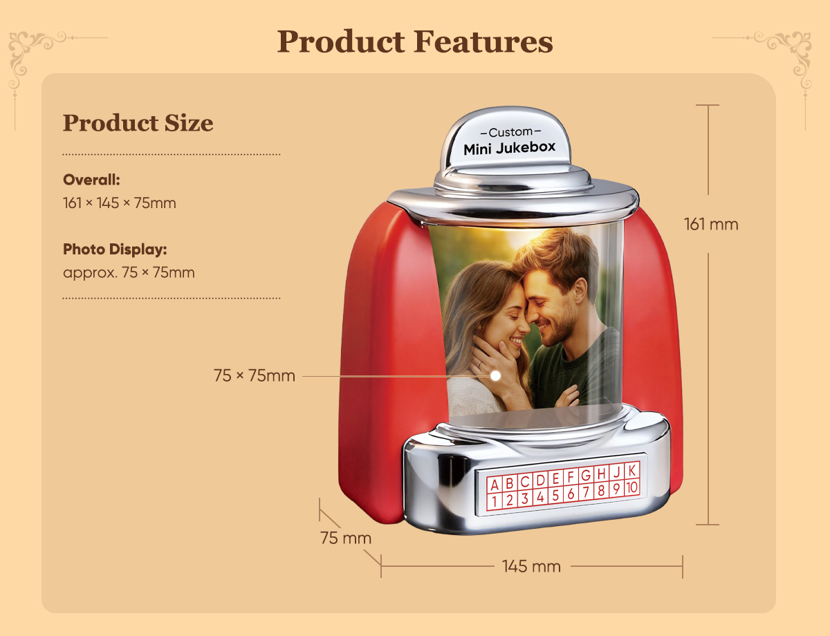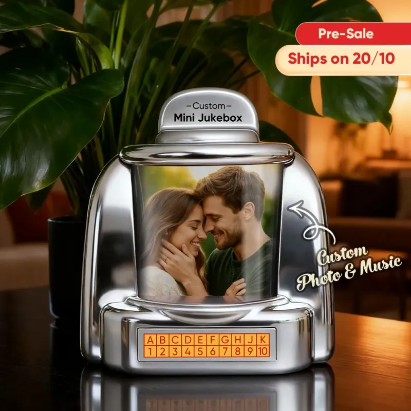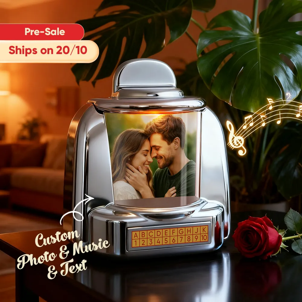 Custom Jukebox Retro Speaker – Personalized Photo,Names & Date Music Mini Player with Radio | Vintage Tabletop Home Decor Nostalgic Gift