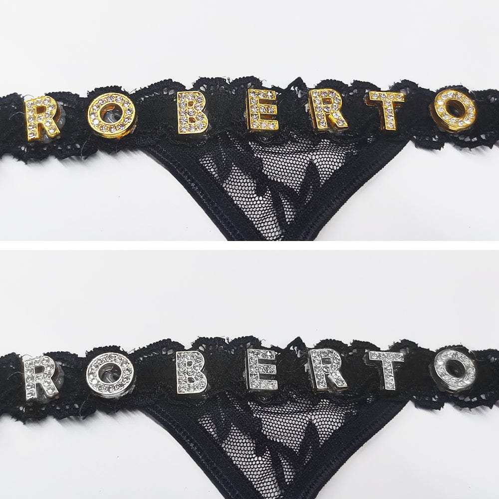 Custom Lace Thongs with Jewelry Crystal Letter Name Gift for Her