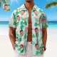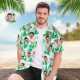 Custom Men's Shirt Face All Over Print Hawaiian Shirt Green Leaves and Flamingo