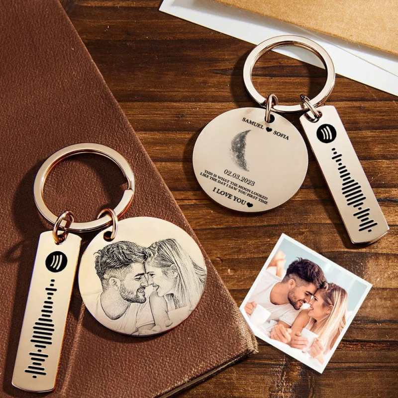 Custom Moon Phase Keychain Photo Spotify Keychain Personalized Stainless Steel Key Chains Valentine's Day Gift
