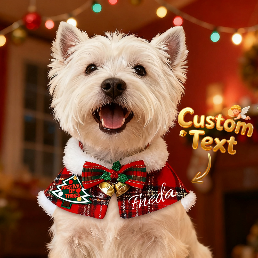 Custom Name Pet Scarf With Plush Collar, Pet Christmas Capes, Cat And Dog Neck Warmers, Christmas Gift For Pet Lovers