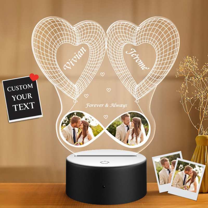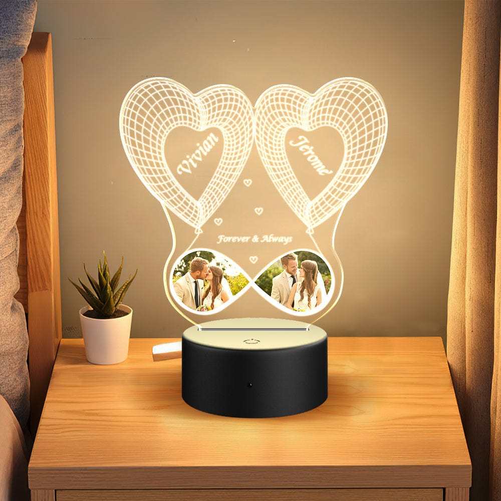 Custom Night Light Heart-shape Personalized Gifts 3D Illusion Gifts for Her