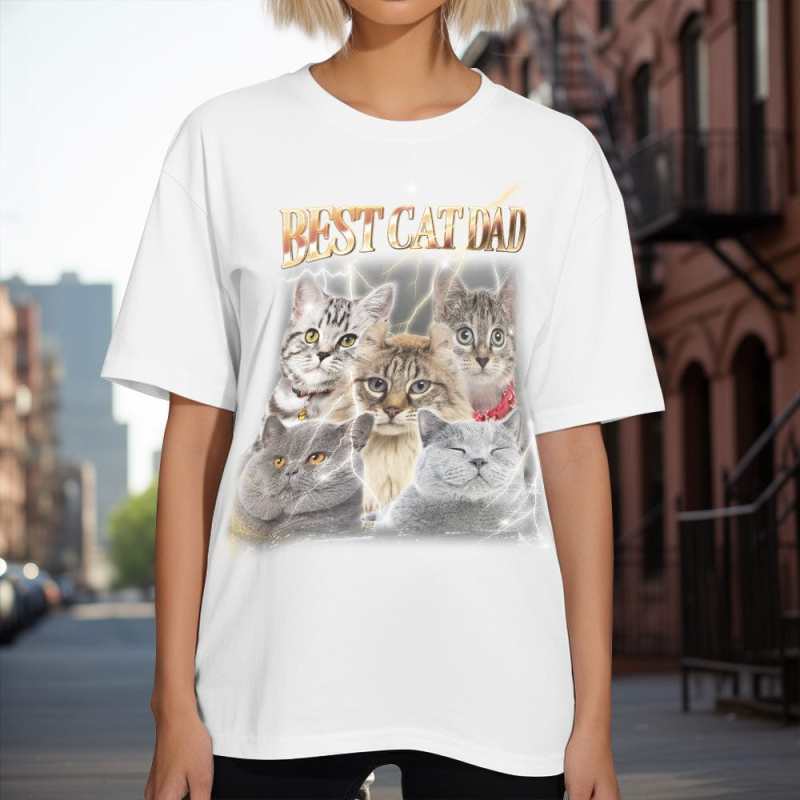 Custom Pet Cat Photo Retro Tee Shirt with Personalized Name Design