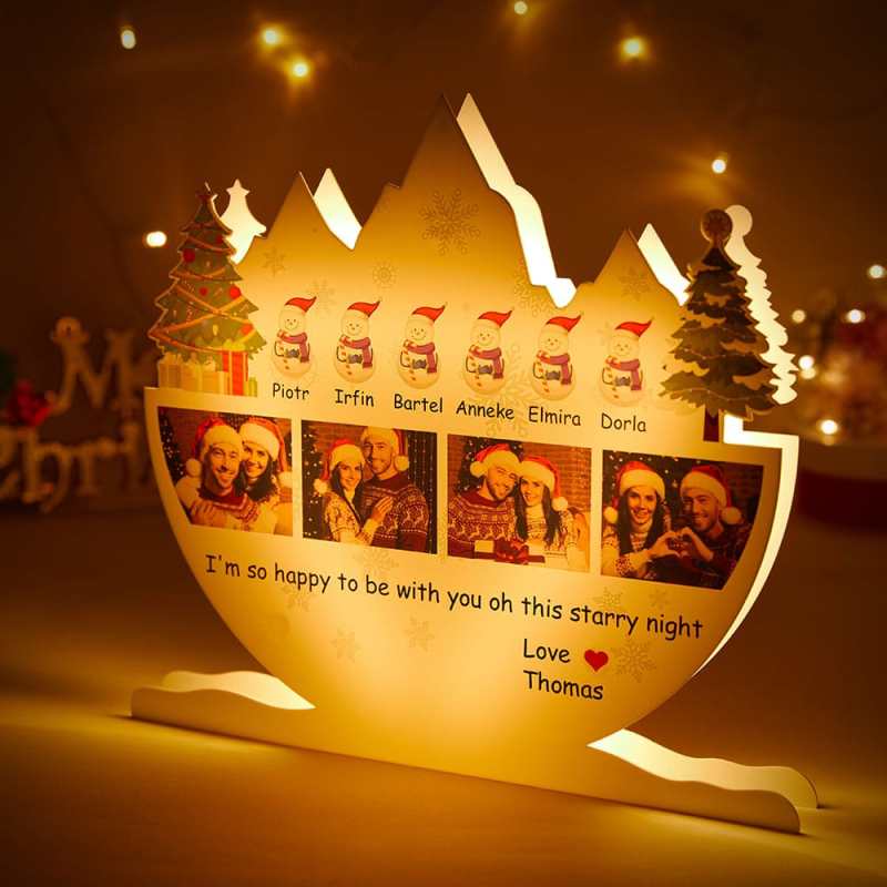 Custom Photo Christmas Lamp with Personalized Name Snowman Family Light Home Decor Christmas Gifts