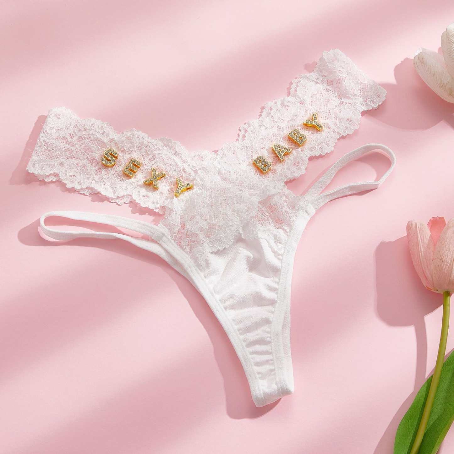 Custom Rhinestone Alphabet Thong French Lace Thong