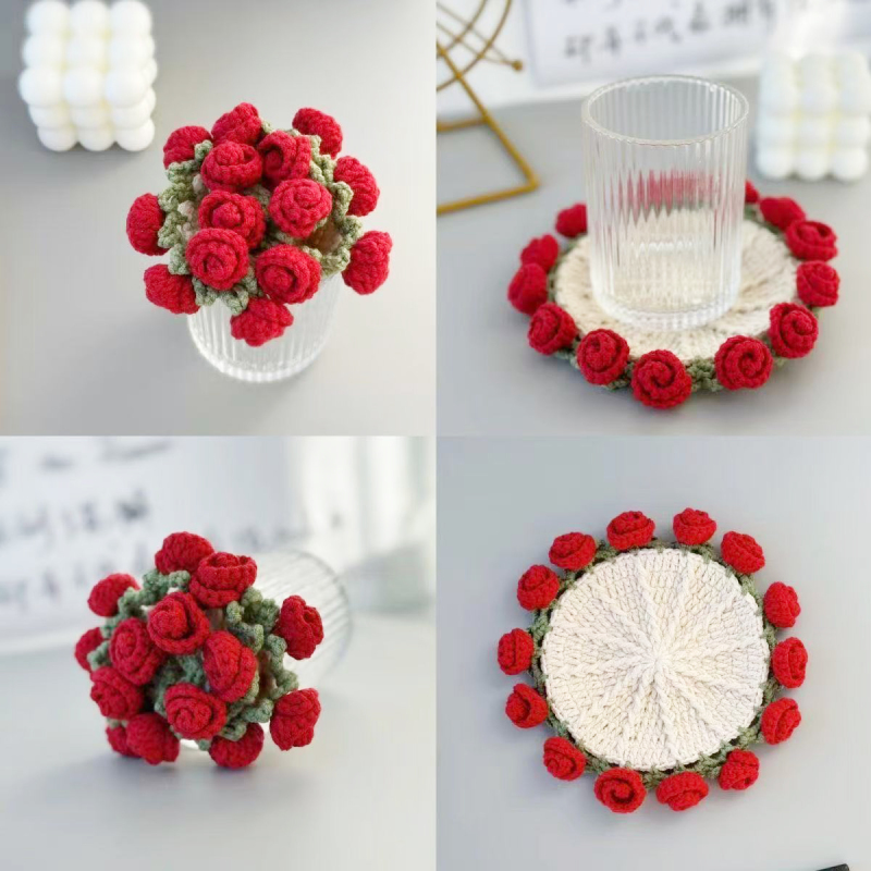 Handmade Crochet Rose Bouquet Coaster Set Transformable Floral Coaster & Home Decor Unique Eco-Friendly Gift