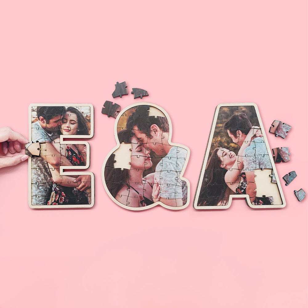 Personalized Alphabet Photo Puzzle Custom Letter Initial Couple Puzzle Unique Valentine's Day Gifts
