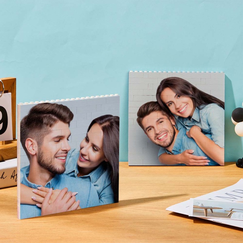 Personalized Building Brick Square Photo Block Music Code Custom Text Frame