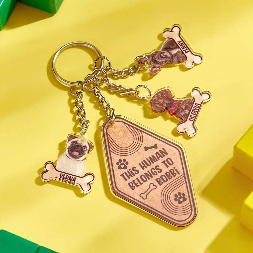 Personalized Dog Bone Photo Keychain Custom Text Gift for Pet Lovers