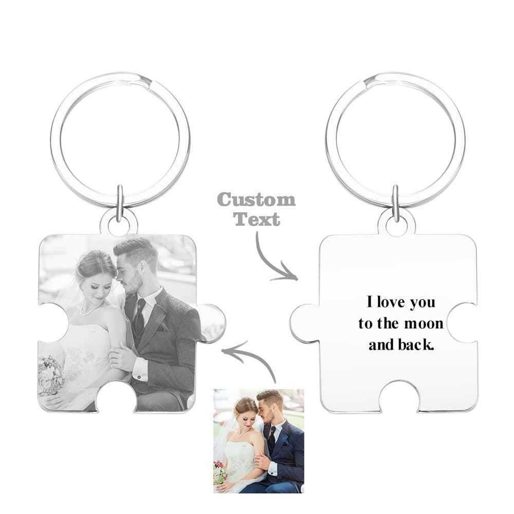 Personalized Jigsaw Puzzle Piece Custom Photo Keychain Couple Anniversary Long Distance Gift