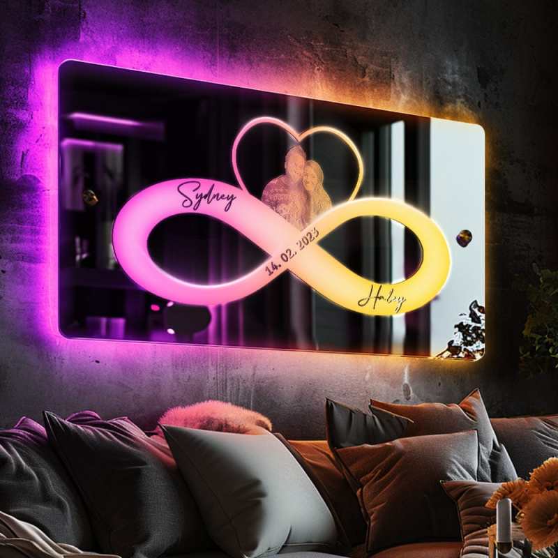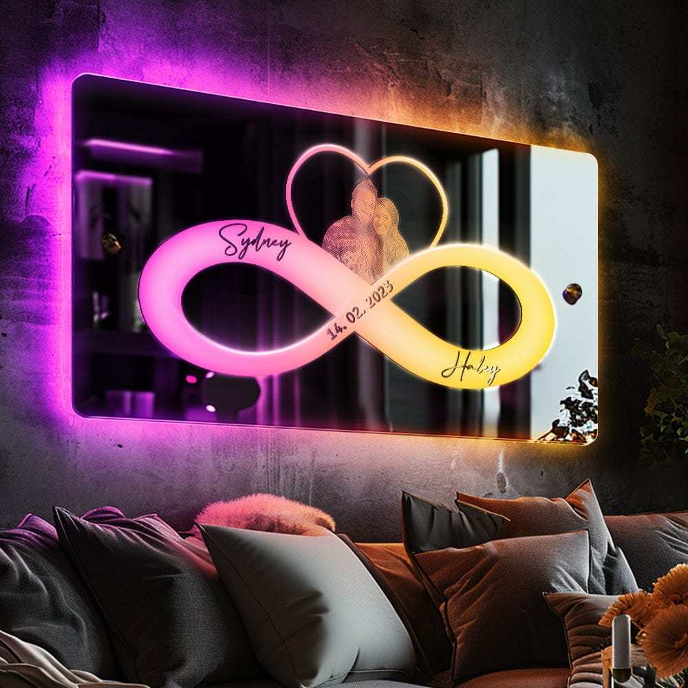 Personalized Photo And Date Name Mirror Light Infinity Heart Couple Valentine's Day Gifts Wall Decorations For Lover