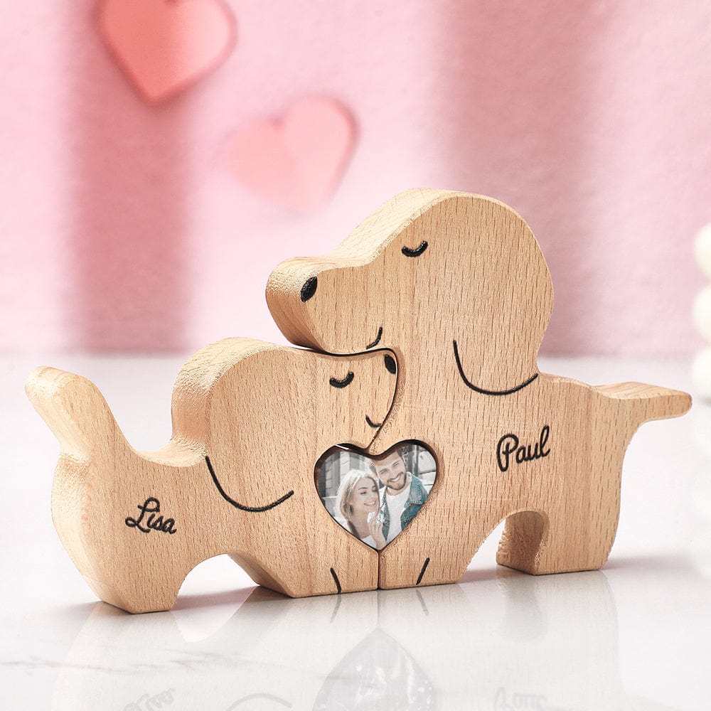 Personalized Wooden Dog Couple Love Heart Puzzle Custom Valentine's Day Gifts