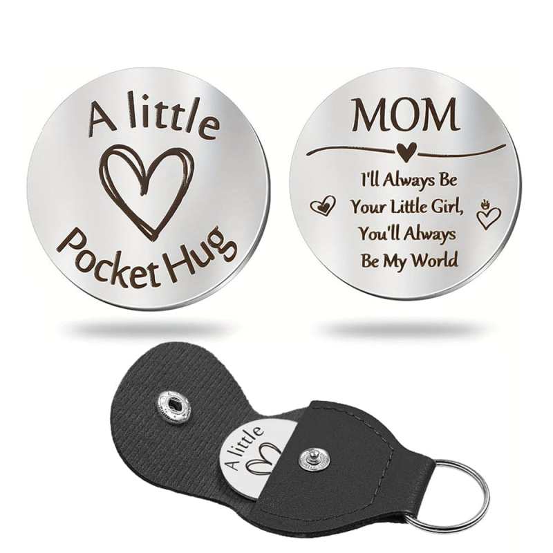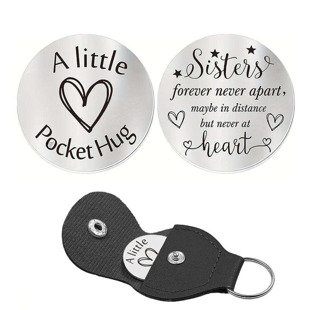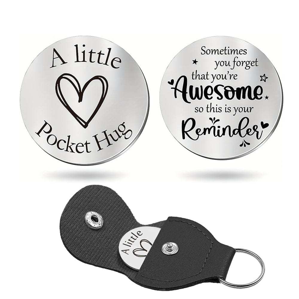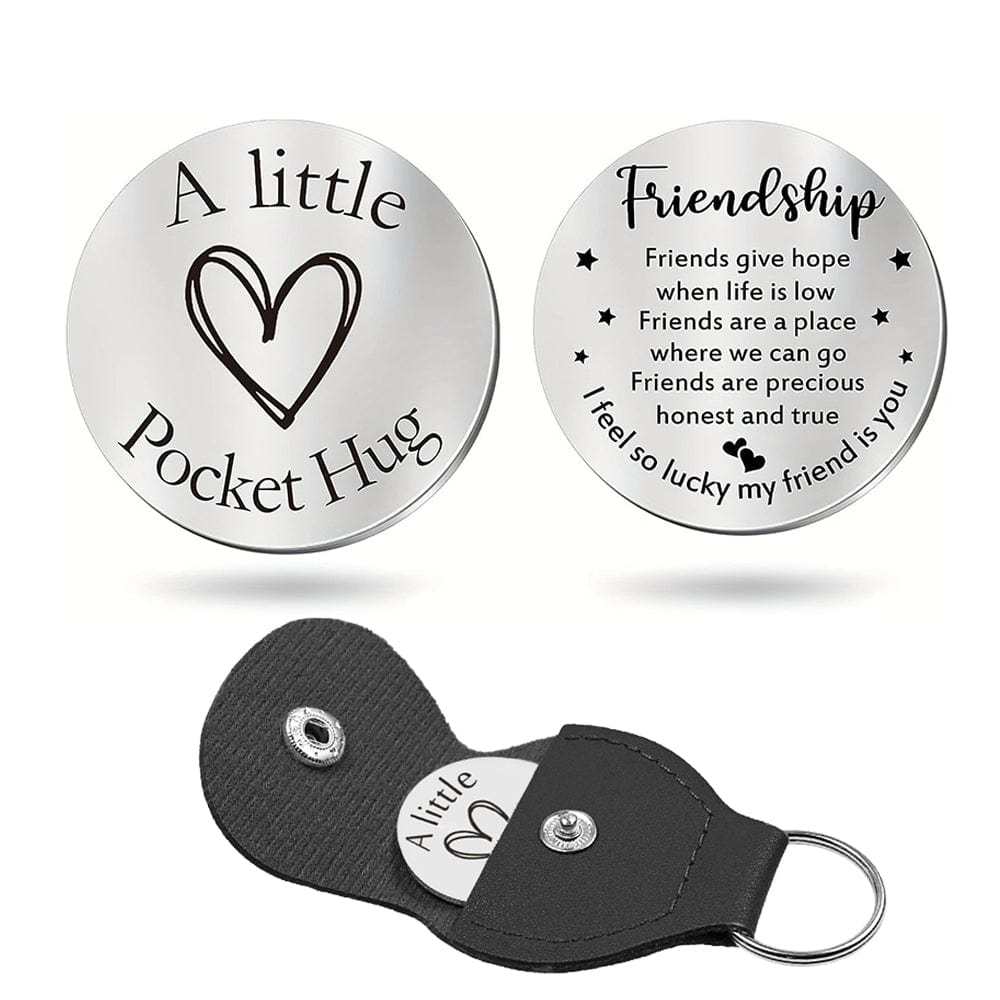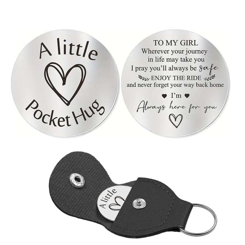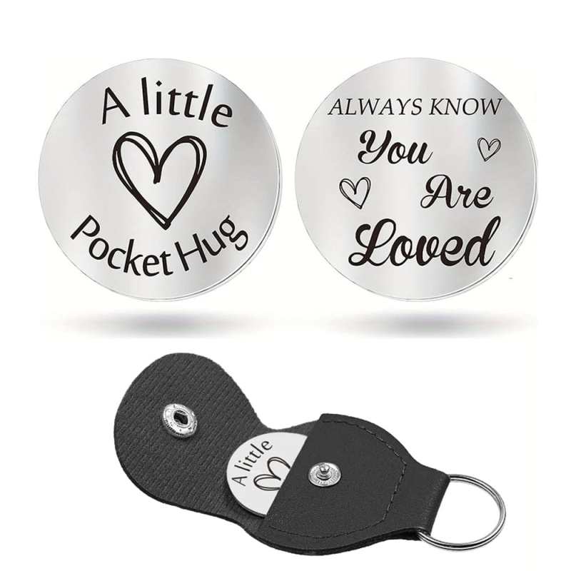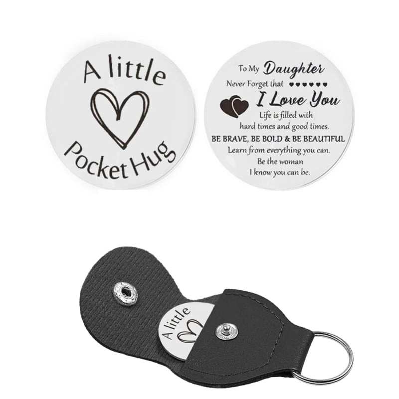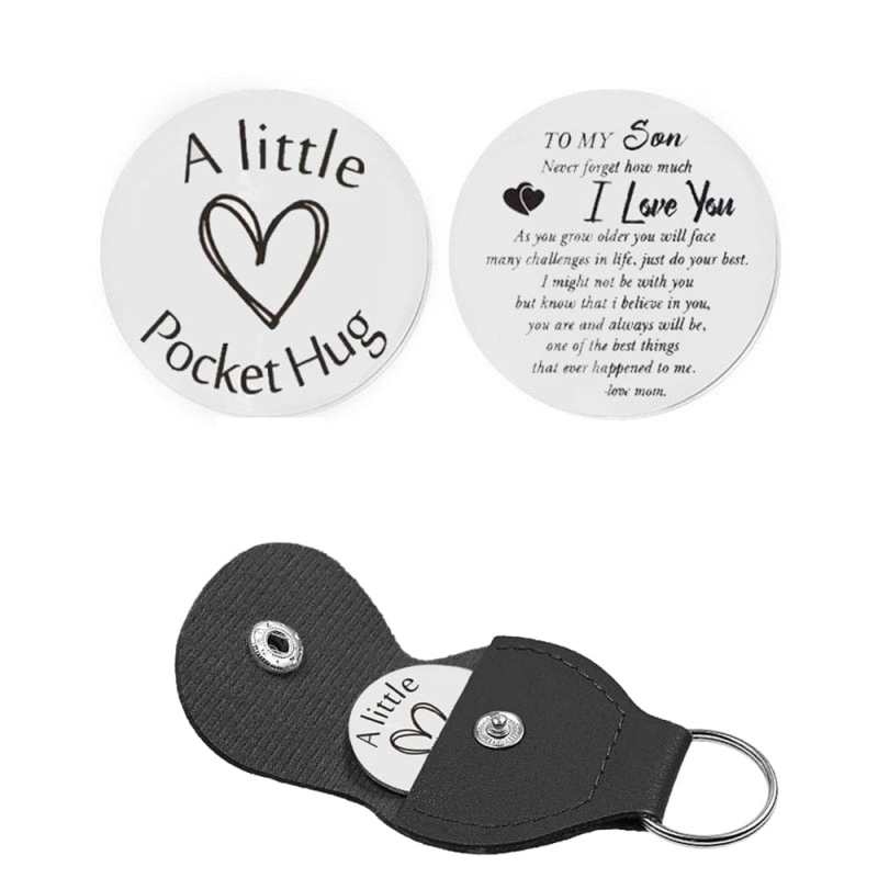 Pocket Hug Token with Leather Keychain Gifts for Friend Son Daughter Brother Sister