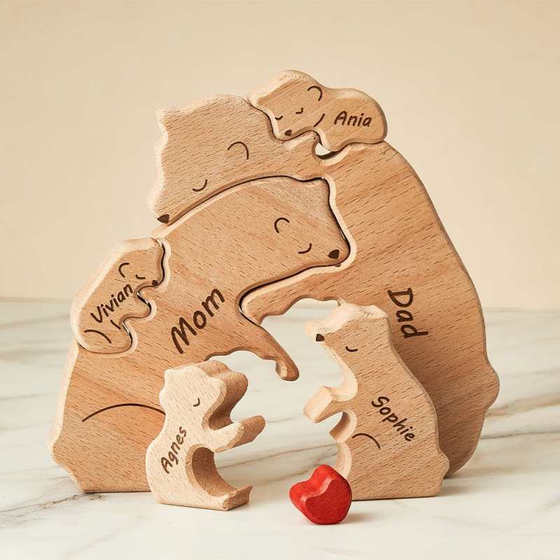 Valentine's Day Gifts Custom Names Wooden Bears Family Block Puzzle Home Decor Gifts